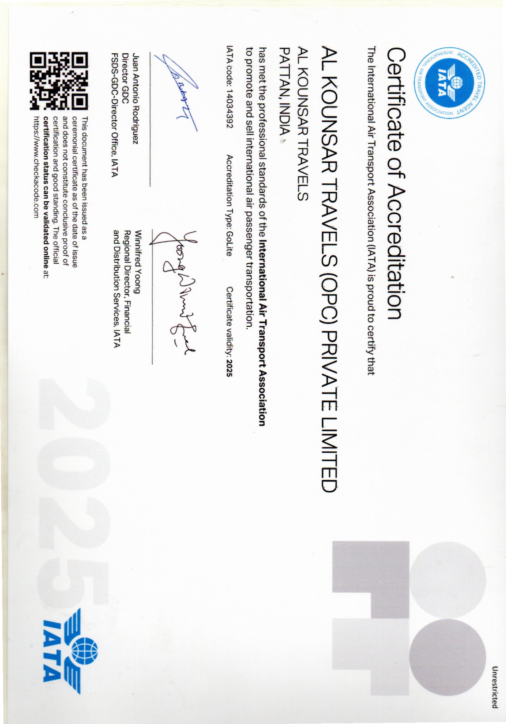 Mashallah Al Kounsar Travels is IATA accrediated